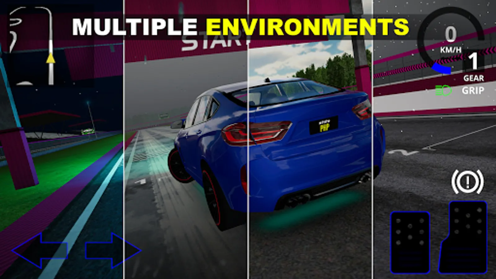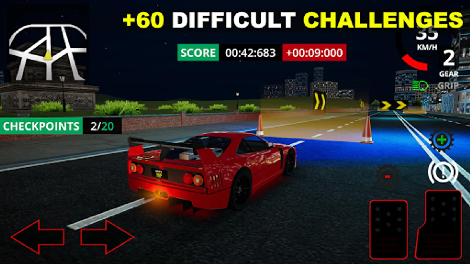 • Custom control settings such as: arrows, gyroscope, steering wheel and automatic/manual gearbox