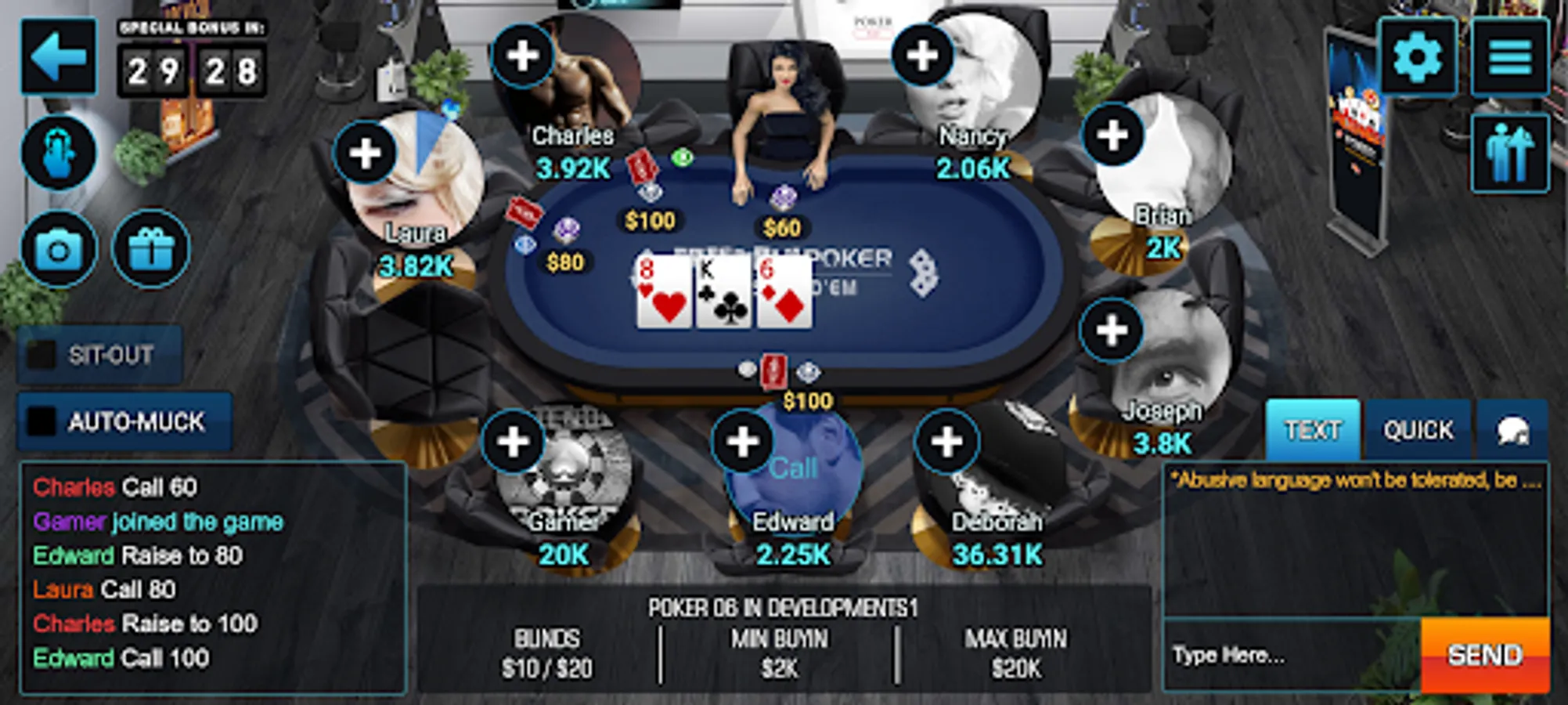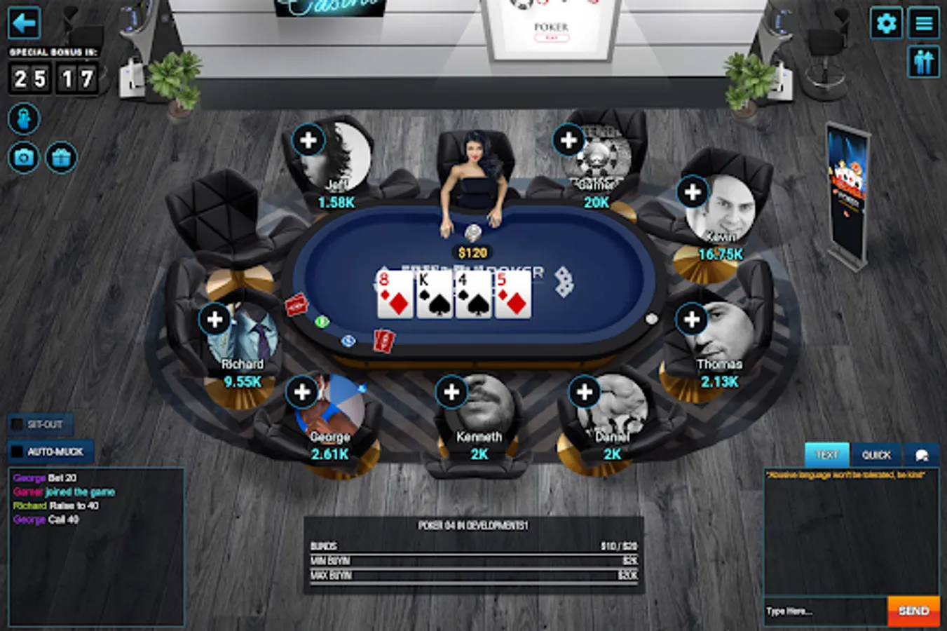 Battle your way through the ranks of Friendly Poker to reach the top and be champion of the world!