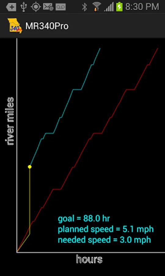 • Race planner: plan your race and then plot a progress graph, hour vs. river mile, to see how you are doing and adjust the plan as needed.