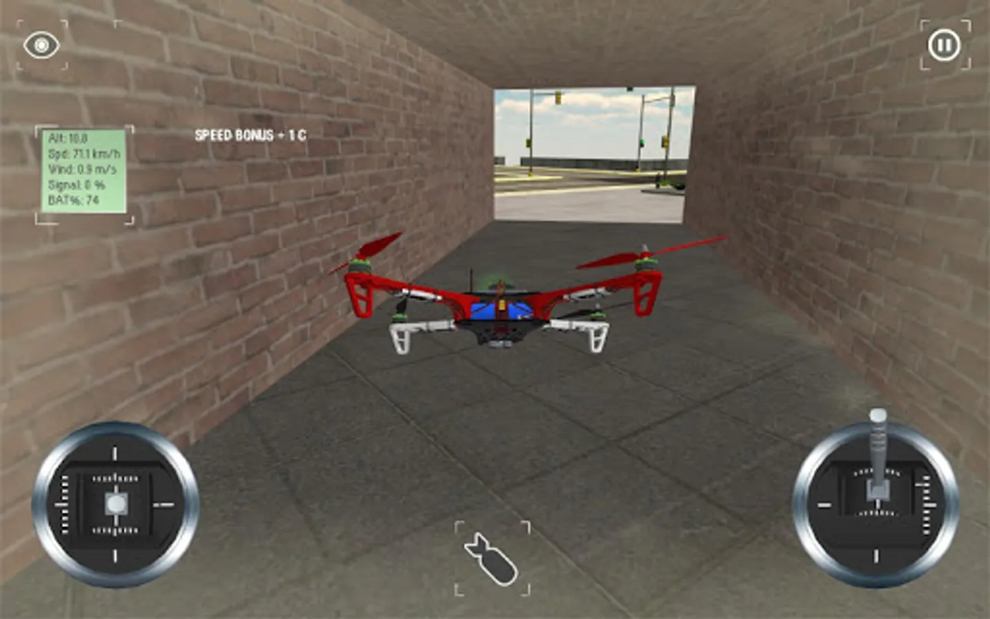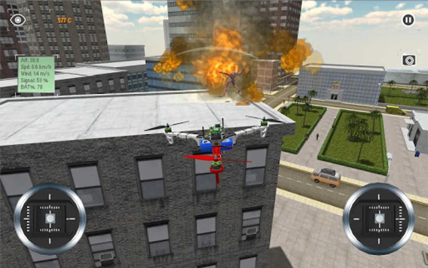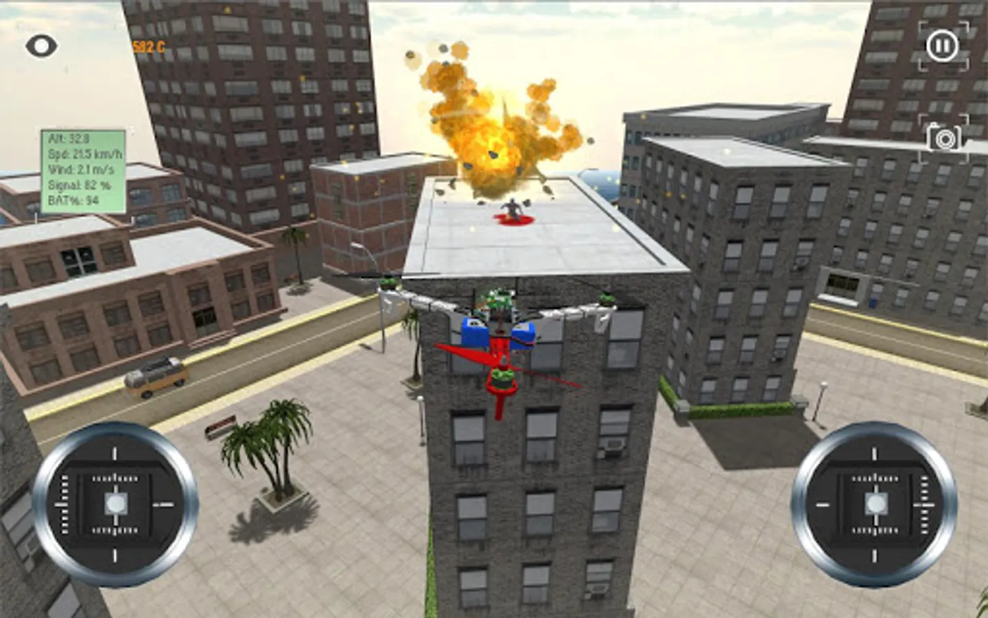 Realistic behaviour of three kinds of drones. In the game we have such physical factors as workpiece weight, wind speed, engine power, frame square, inertia, light free flight standfast.