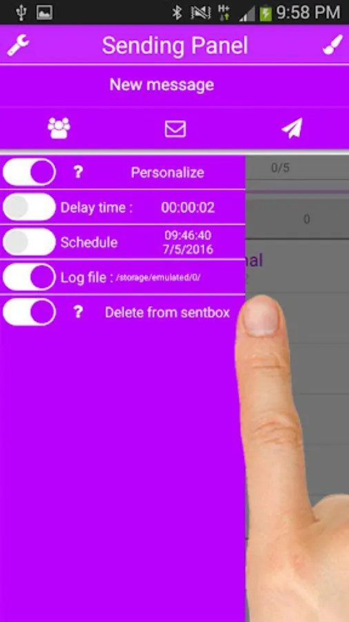 ✔ Background service , keep working with other applications while MSMS sending messages.