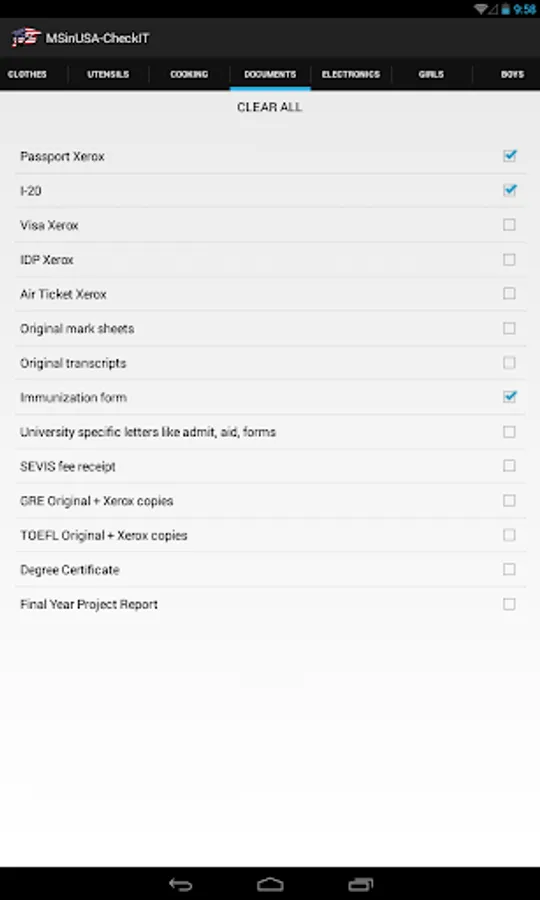 This application is a Check List for Students travelling to the United States to pursue their Higher Education.