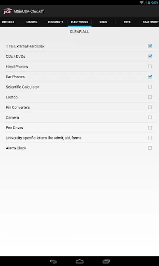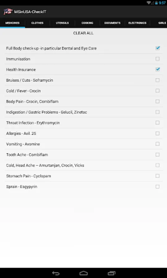 The application covers a wide range of things such as what Clothes to pack, which Documents to carry, what Utensils to take along etc. You can Check things off as and when you pack them and maintain that record on your cell phones.