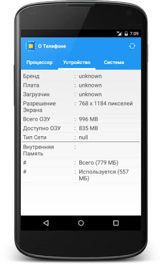 Simple, but at the same time a very useful application that allows you to easily find out detailed information about the hardware of your device.