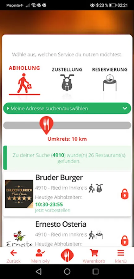 Simply select the desired service (table reservation, pick-up or delivery) and restaurant and off you go...