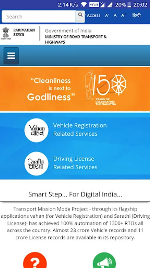 Mission: To automate all Vehicle Registration and Driving License related activities in transport authorities of country with introduction of smart card technology to handle issues like interstate transport vehicle movement and to create state and national level registers of vehicles/DL information.