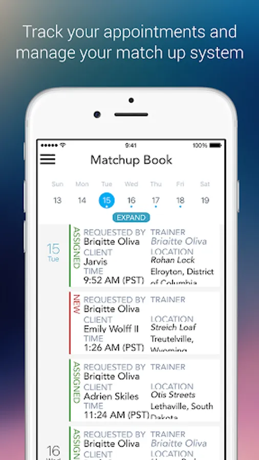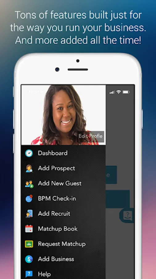 • Receive push notifications to alert you when someone has sent you a message or a request to do an upcoming appointment (Match-ups).