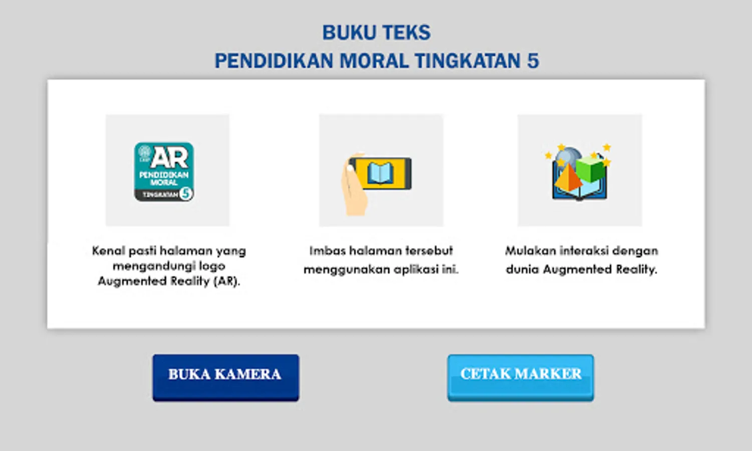 This application is an Augmented Reality (AR) application for Form 5 Moral Education Textbooks published by Dewan Bahasa dan Pustaka.