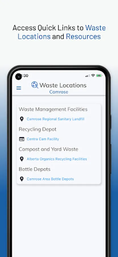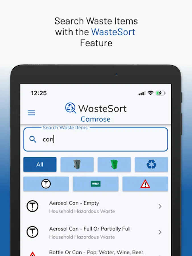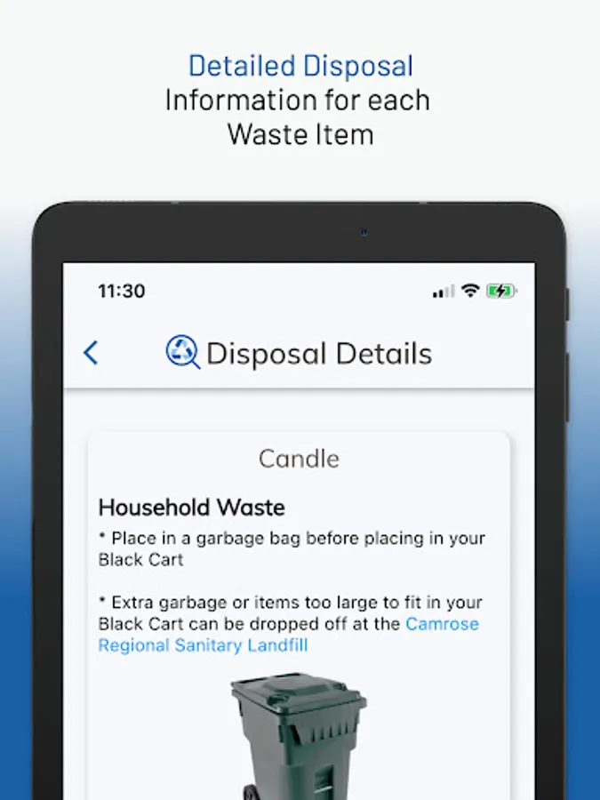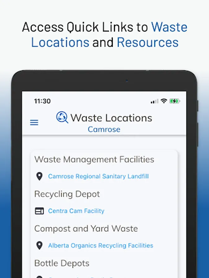 WasteSort Camrose lets you organize your waste disposal by providing a Waste Sorting tool as well as Waste Resources and Locations. (Access web app via Camrose.WasteSync.ca on any device)