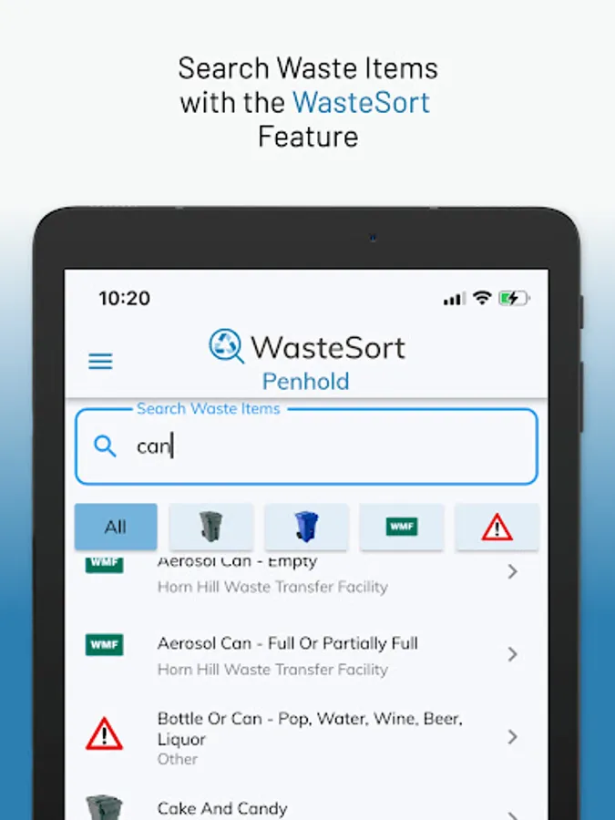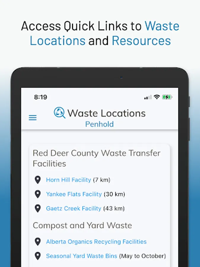 WasteSort Penhold lets you organize your waste disposal by providing a Waste Sorting tool as well as Waste Resources and Locations. (Access web app via Penhold.WasteSync.ca on any device)