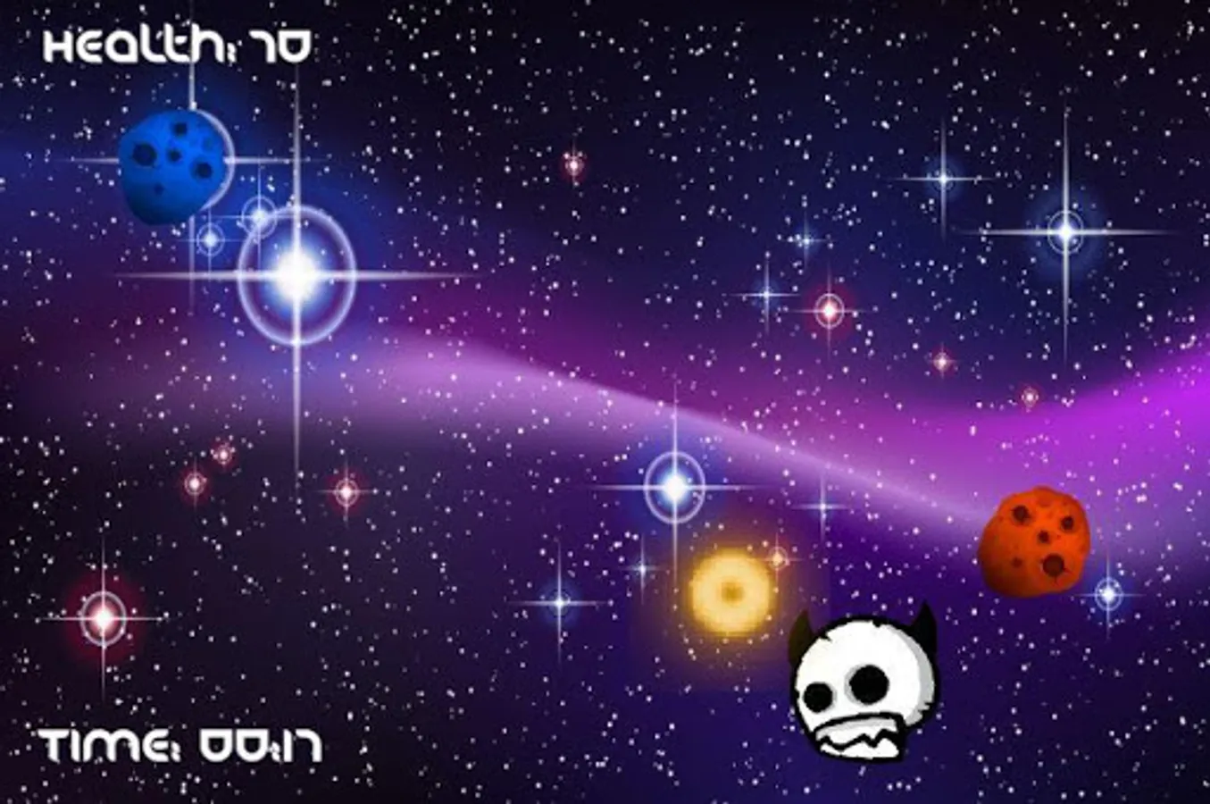 In the vast space, there's a vortex and a light that travel the cosmos. Until they come across a field of skulls and asteroids. The light cannot move by itself, so it is up to the vortex to swing light which ever way to avoid the incoming projectiles. Tap to create a vortex near the light to swing the light in a direction.