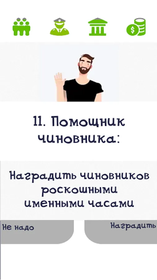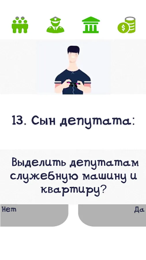 After a little familiarization with the game, you take on the role of a candidate for a deputy, and then, you take on the role of a deputy of parliament.