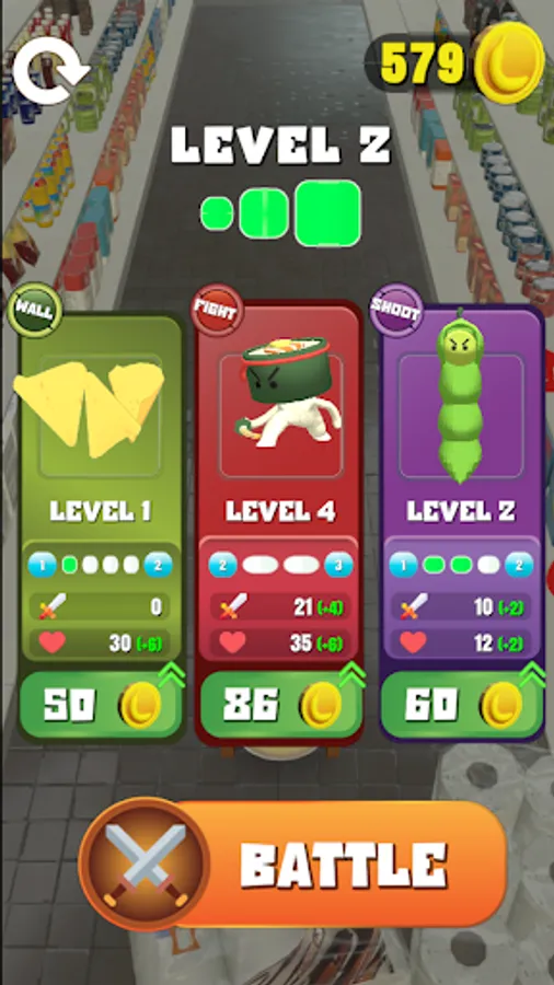 Draw & Upgrade to defeat the hungry enemy armies to save the food and escape the shop!