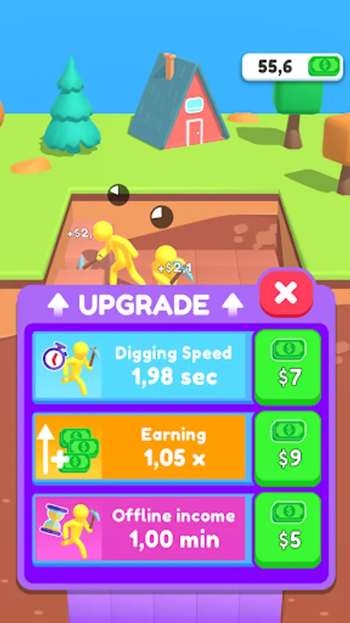 Manage your miners and dig the hole! Tap to speed up work and merge miners to get better workers. Upgrade your stats and just do the best work what you can!
