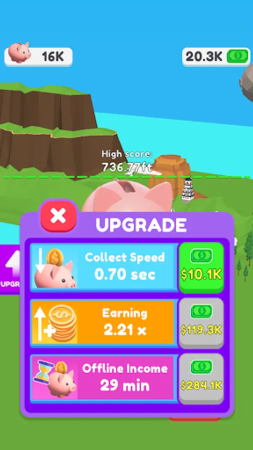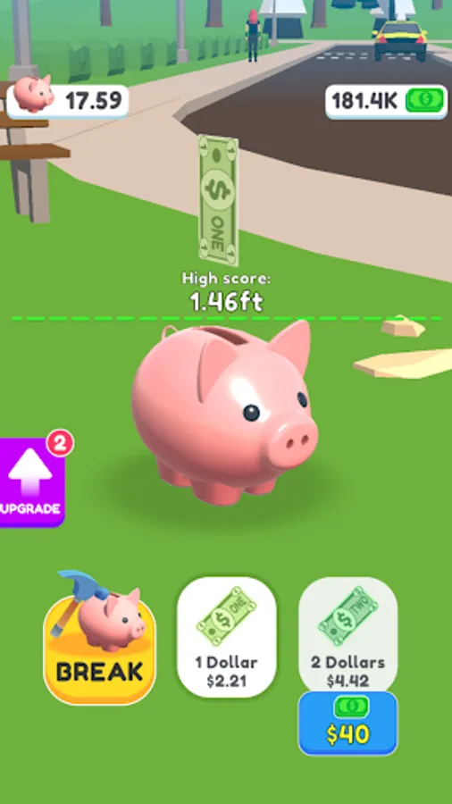 Buy more and more and more stuff to make money faster. Manage your piggy bank and break it to collect all the money from the piggy bank!