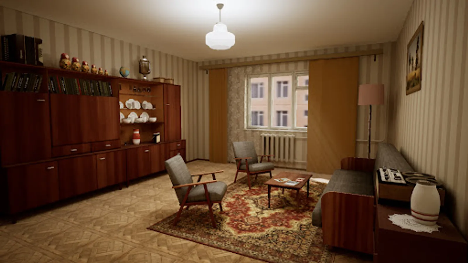 Studying the works of a professor who deals with the theory of time travel, you yourself find yourself in his apartment of the 70s, from where you need to escape in our days. It is necessary to solve the riddles left by the professor. Your friend will help you with this by contacting you by phone. A small Soviet town will help you plunge into the atmosphere of the 70s. The town itself, in which we get and explore, was deserted due to an unsuccessful experiment.