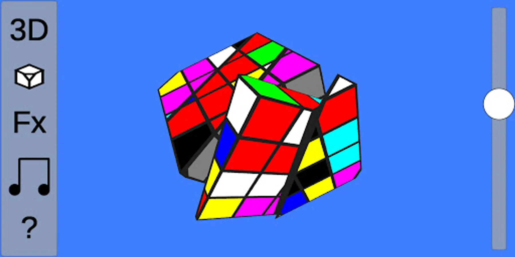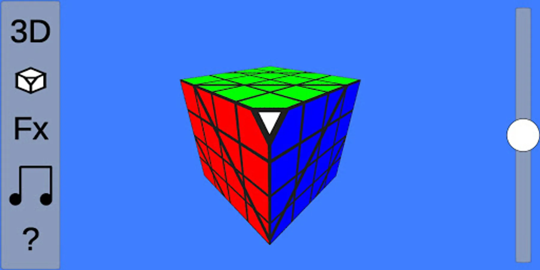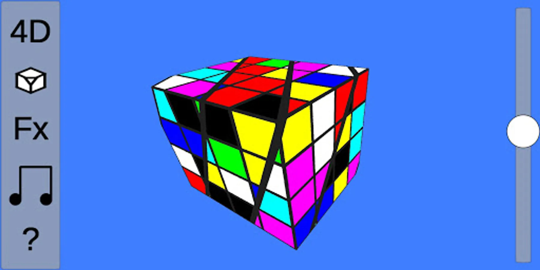 The slider on the right has two different purposes, depending on whether 3D or 4D is selected. If 3D is selected, it will allow you to zoom in and out. If 4D is selected, then you can perform a 4D scan of the tesseract. Note that if you slide too far, that the tesseract may be completely out of your 3D field of vision and seemingly disappear. Not to worry though, because if you slide back you will see it again. You can also press a button in the left panel to reset the whole orientation of the tesseract, so you will view it as if you had rebooted the game.