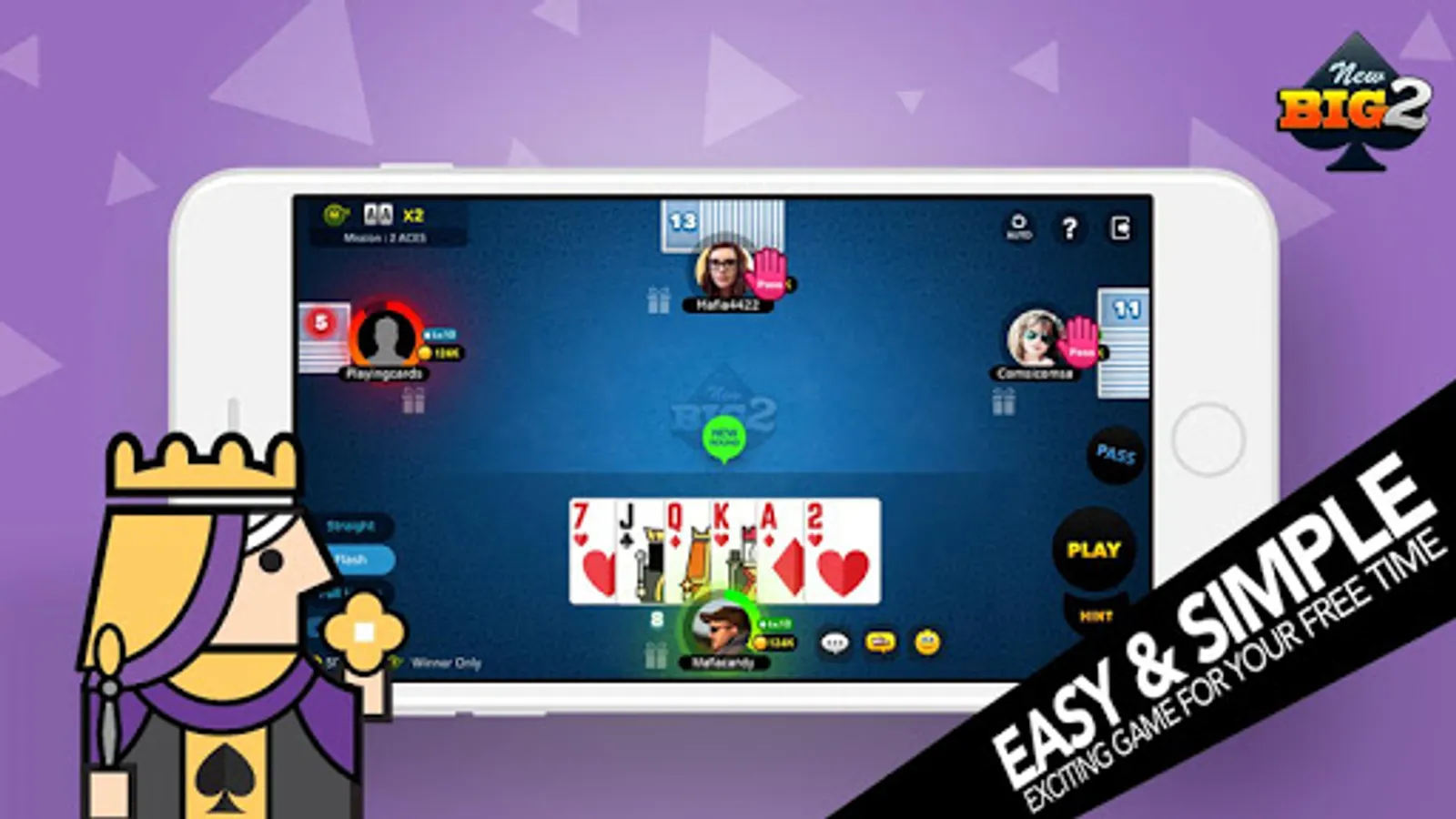 Big2(Capsa Banting) can be played with 2 to 4 people with 1 Deck(52 Cards). Each player get 13 cards and the player who spent their whole cards will win the round.