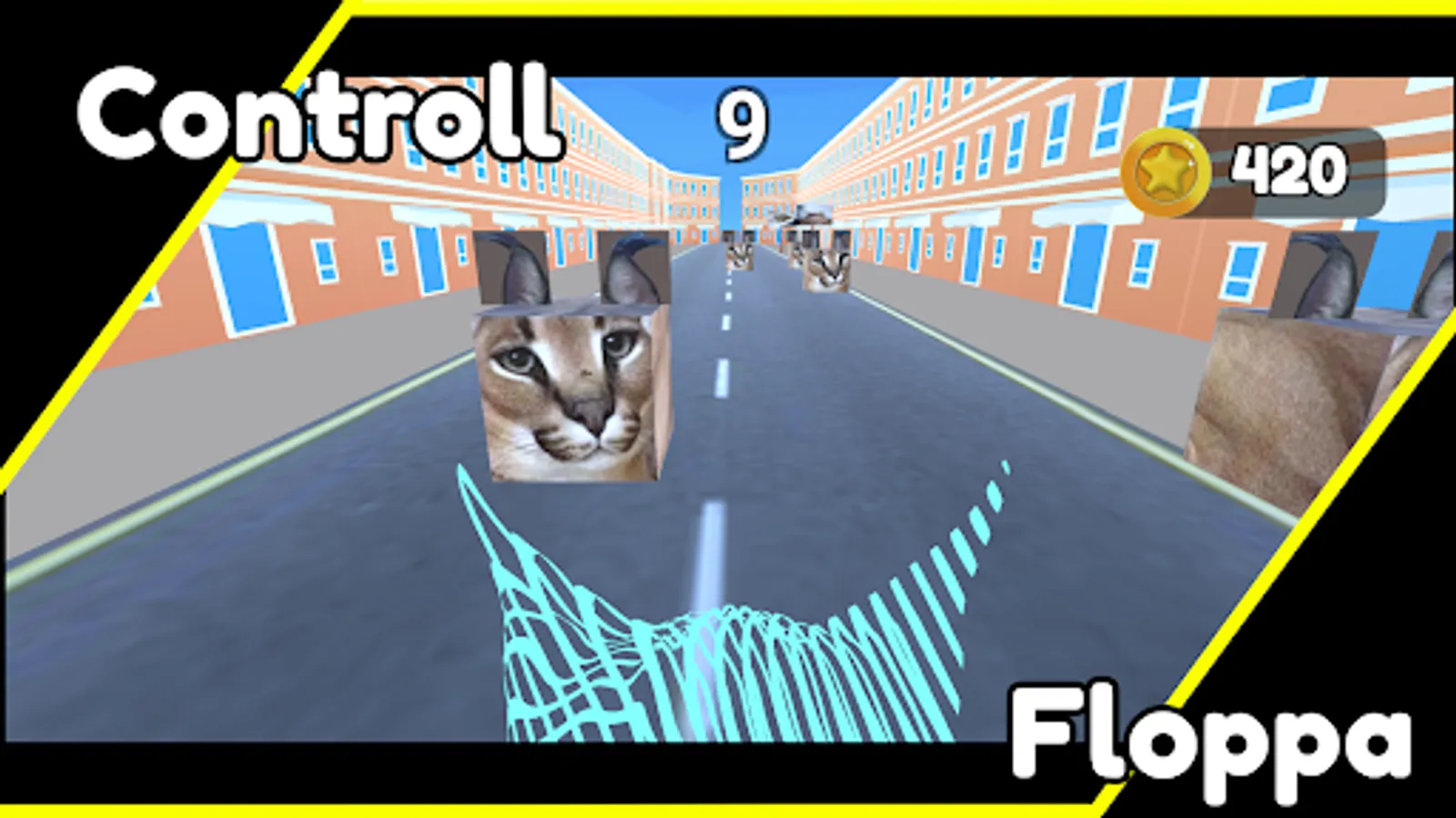 You are the great Floppa and while you are running you need to avoid the floppacubes and get as far as you can.