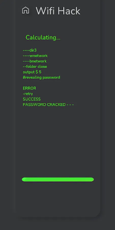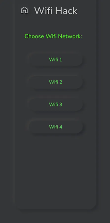 Prank your friends by acting like you can hack wifi passwords. First select the wifi, then the hacking algorithm and then a fake password will be shown on the screen. It looks like it was real hacking, but of course it is not. The calculated password is just a random word.