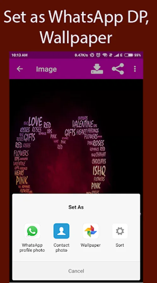 - Images directly set as WhatsApp DP(Display Picture), Facebook Profile Picture, Wallpaper.