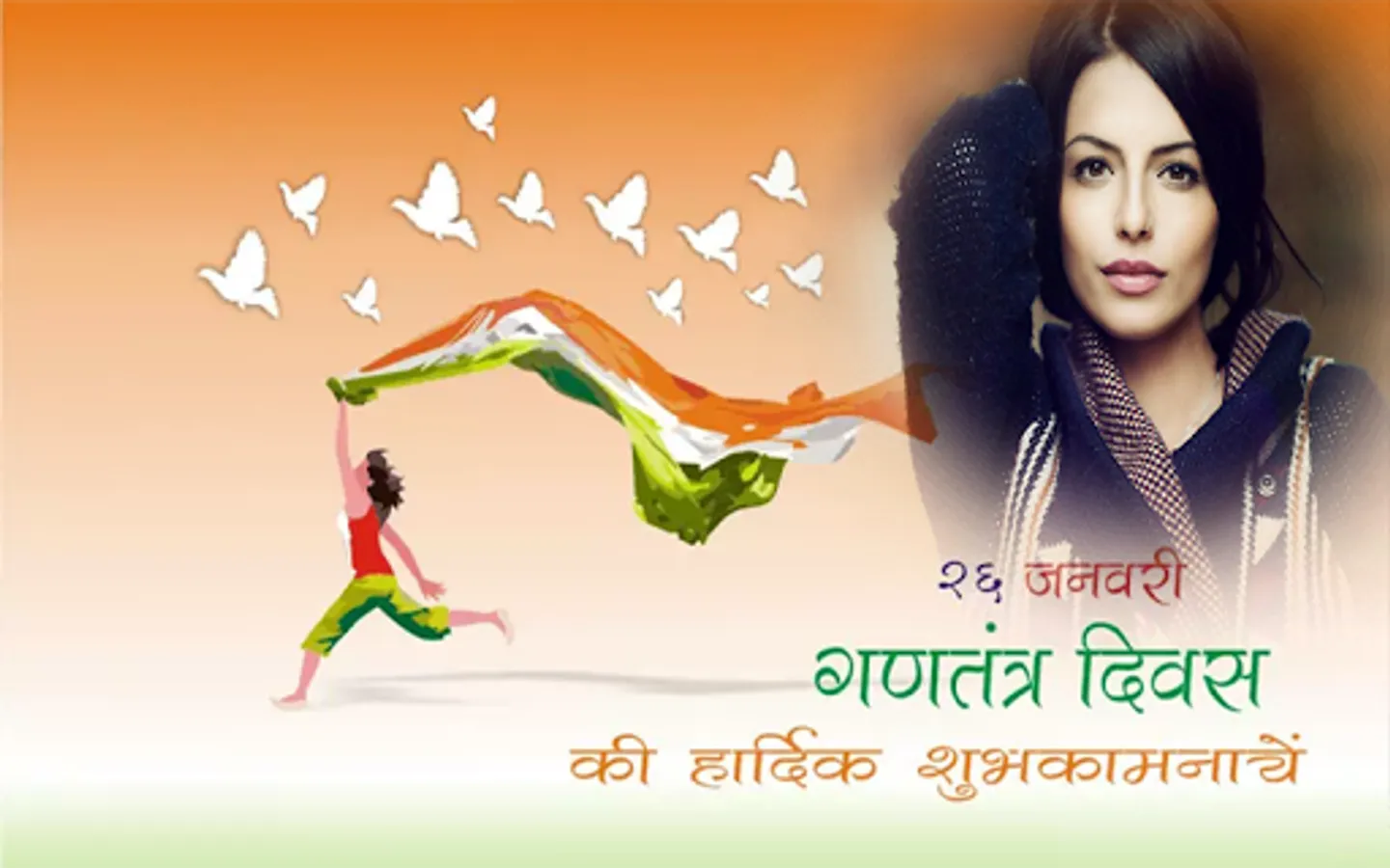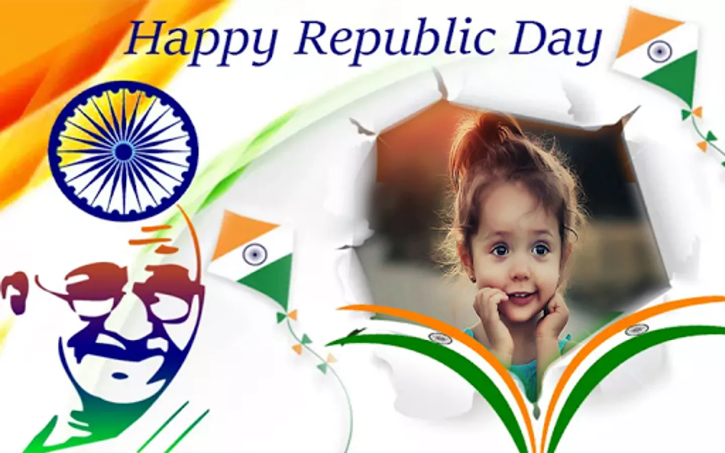 Republic Day Photo Frame 2020 contains Frames like 26 January 2020, quotes, sms, messages, Animated frames, Jai Hind, Jay hind, Gantantra Divas themes, Indian Flag, Prajasatak Divas, Proud to be an indian, Indian Map, Mahatma Gandhiji, Flag, Colorful Graphics, 3D, HD, Vande Mataram, Bhagat Singh, Birds, Heart Shaped, Kites, etc.