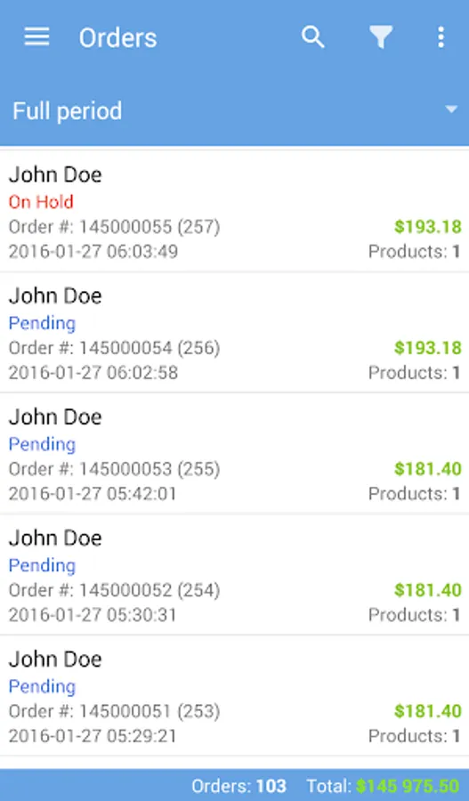 • Ability to filter orders by status, change it right from mobile phone or tablet