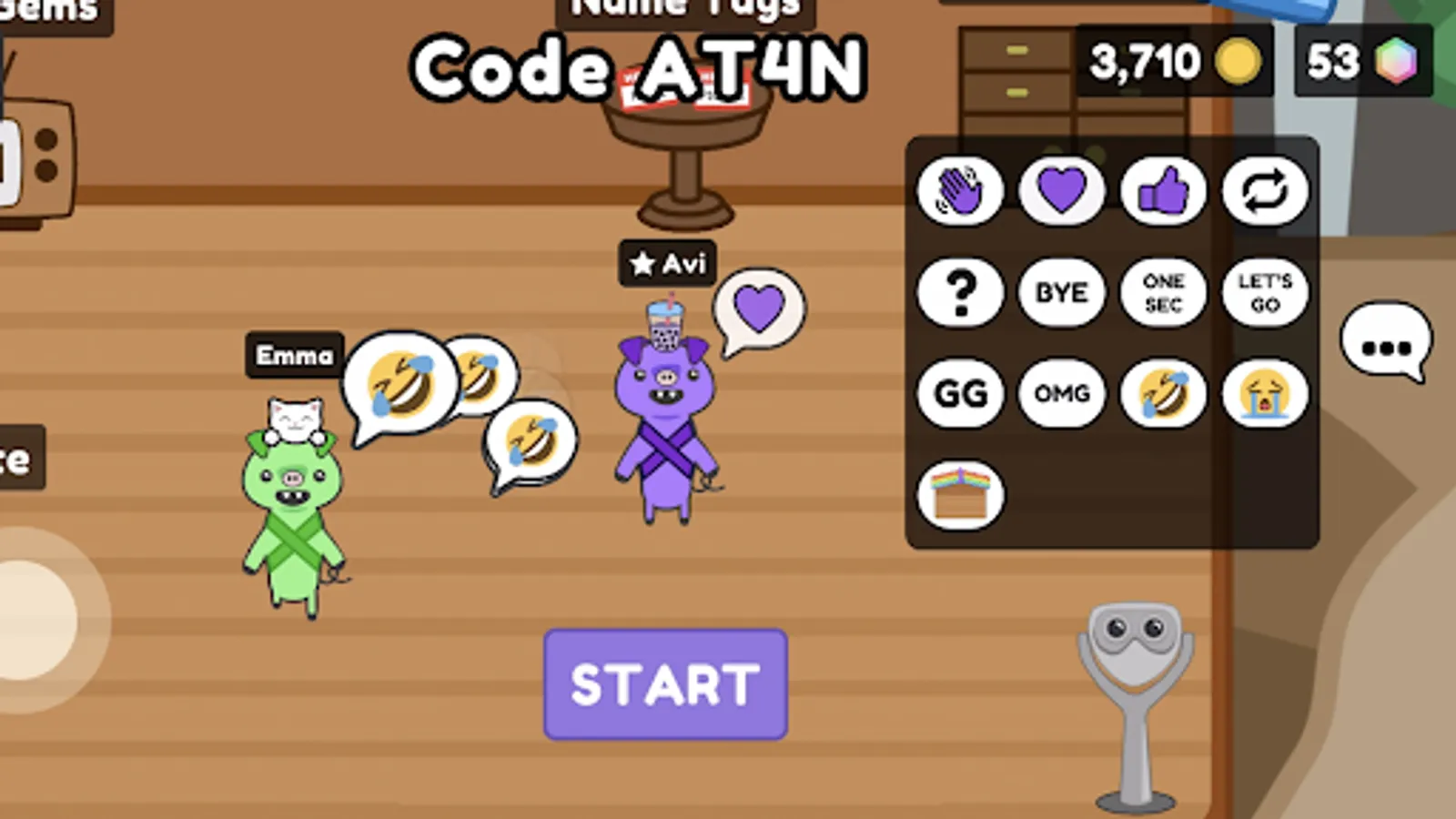 When you play the game with others, you’ll invite them over to your treehouse. So, why not make your treehouse look absolutely sweet? There are thousands of combinations of roofs, floors, walls, and more. Want a super edgy all-black goth house? Or a pretty pink house with a hearts and rainbow floor? The only limit is your imagination (and me adding more decoration options into the game).