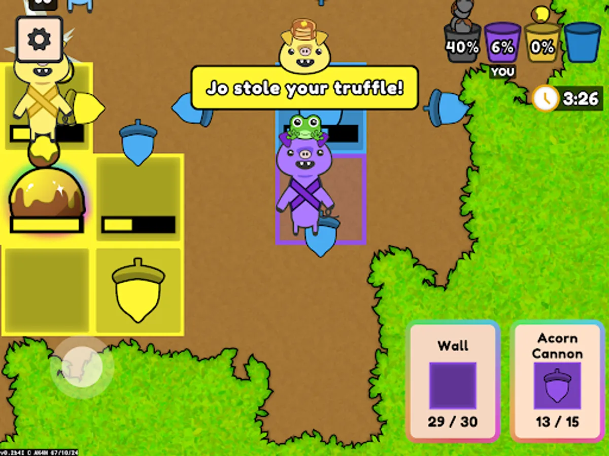 Truffle Hogs is being made by one person (my name is Avi, hi!), with additional art and music produced by a few of his friends. The game is currently free-to-play, with no in-app purchases, and is only supported by optional ads that do not affect the game competitively. There are no lootboxes or other icky gambling mechanics here!