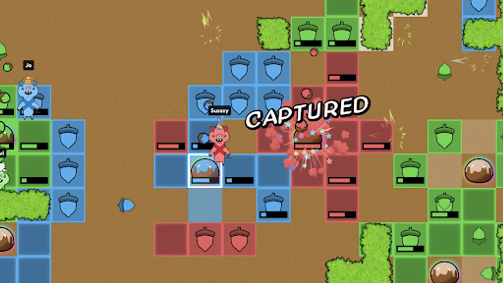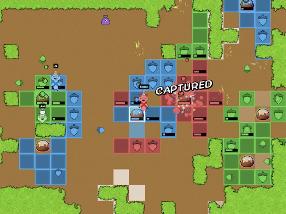Truffle Hogs is silly, colorful, and fun... but it's also competitive! The game itself is a fast-paced strategy game where you’ll run around searching for buried truffles, stealing truffles found by other players, defending your own truffles, and grabbing some crazy powerups.