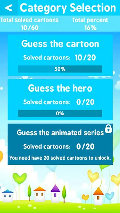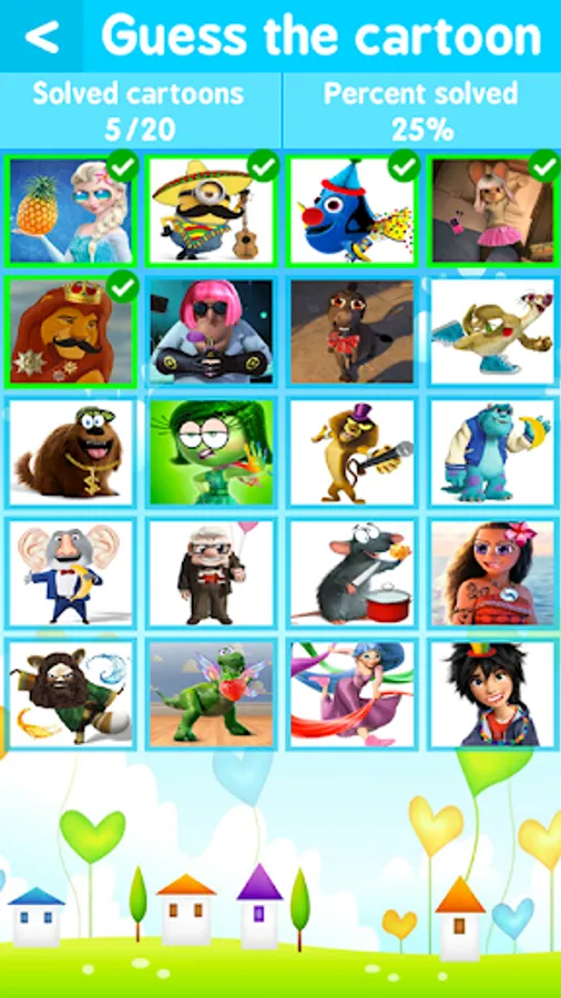 It is necessary to collect name of the hidden character or name of the cartoon from proposed letters in a specially designated field. Earn coins and spend them on hints to guess the characters of cartoons, which you don't know.