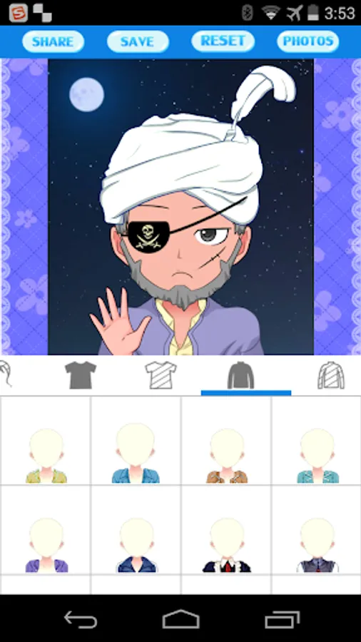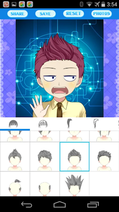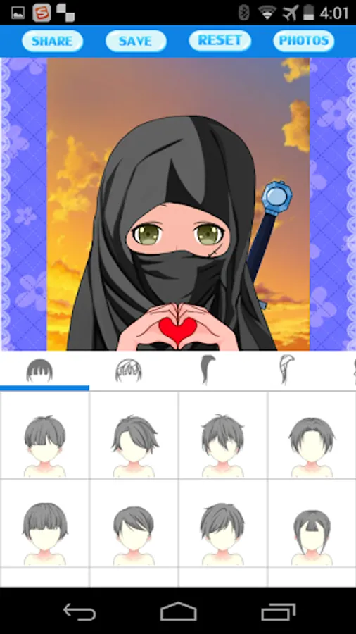 This application lets you easily create your anime cartoon avatar photos, head portraits and profile pictures. You can select among different types of faces, eyes, eyesbrow, mouths, hair styles, accessories and clothing. All these elements can be colored as you desired. Moreover, you can create various postures with funny gesture.