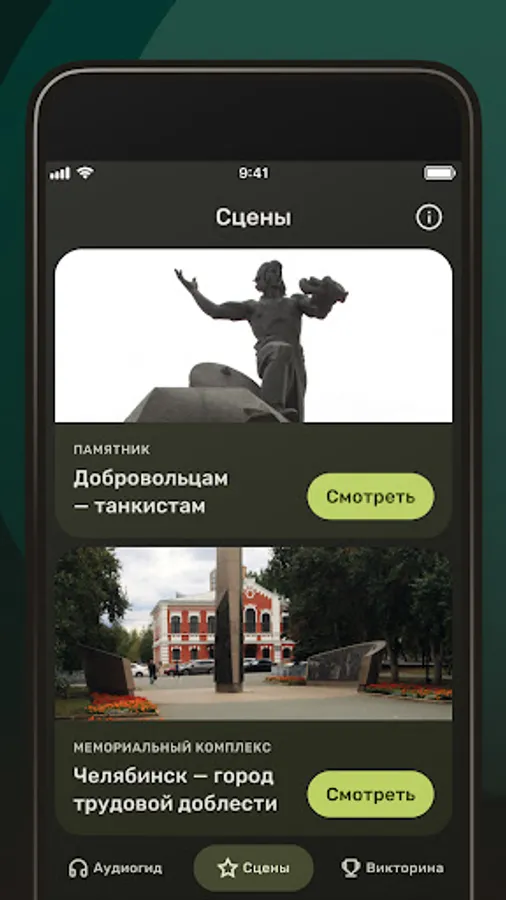 In the “Scenes” section, two installations of historical reconstruction are presented for viewing in augmented reality technology: the assembly of a tank in the workshop of the heroic Chelyabinsk Kirov Plant in the fall of 1941 and the seeing off of tank volunteers on May 9, 1943 with the opportunity to take a commemorative photo inside the reconstruction of this event.