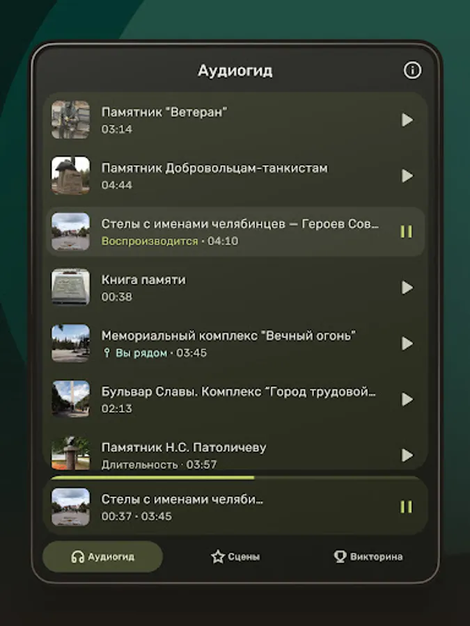 "Audio guide" will tell about the history of the Boulevard of Glory, reveal the pages of the military feat of our fellow countrymen and the labor prowess of Tankograd.