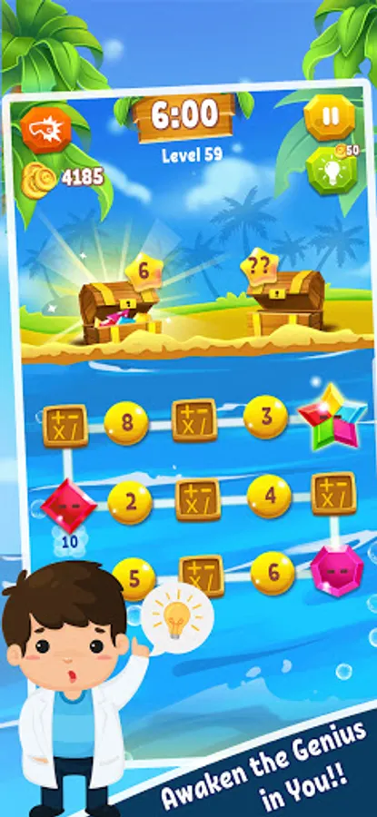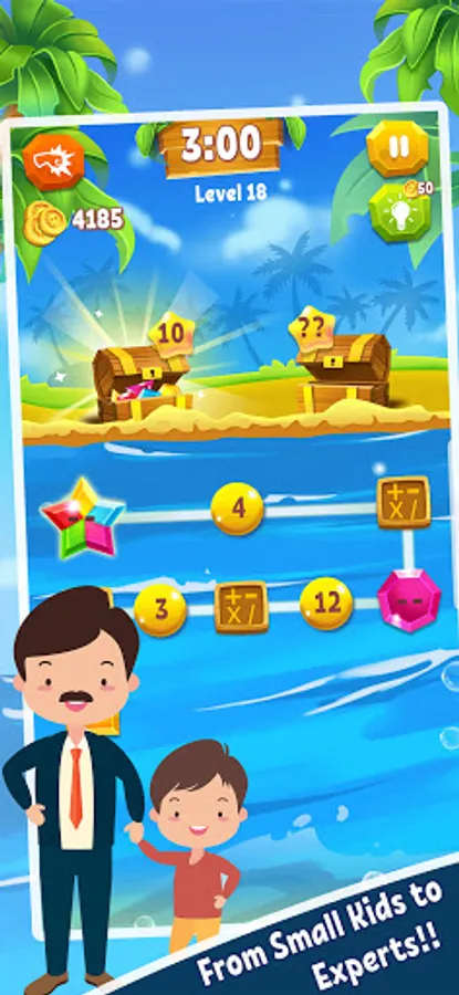 Add joy, fun, excitement, enjoyment, thrill & challenge with friends & family. Multiply thinking, talent, success, achievement, victory, learning & tricks. Divide happiness with family. Enjoy a combination of riddle math challenges, cool math games, logic puzzle games, brain teaser, and mind teasing levels in this free math adventure.