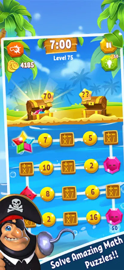 Welcome to Number Trouble, a math logic & sharpen your mind puzzle. In one of the best math puzzles and brain teasers, you need to help collect the fortune from the pirate. How long can you go in this brain math puzzle? Can you solve all of the math riddles?
