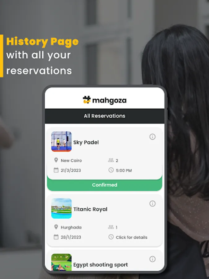 Mahgoza is a mobile app that provides users with access to information on local businesses, services, and events in their city. It also allows users to connect with businesses to make reservations and explore new activities. The app includes a variety of features, such as the ability to save favorite locations, add notes to reservations, and even receive notifications when their bookings are confirmed. It makes it easy to find and book the perfect place for you and your group. It also offers exclusive discounts, rewards, and deals for its users. It's the perfect way to save money and find the perfect spot for your next outing.