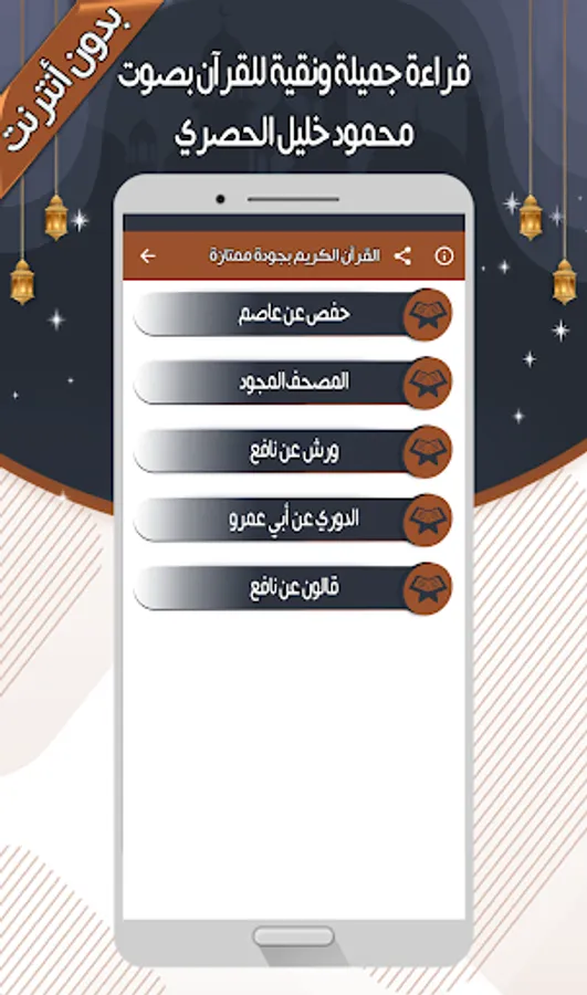 The interface of the Holy Qur’an program with the voice of Mahmoud Khalil Al-Hosary is very simple, which enables you to use the program with ease and ease. You will not suffer any difficulty starting from downloading the program from the store until the download of the Holy Quran download program with the voice of Mahmoud Khalil Al-Hosary, and using it to listen to the surahs of the Noble Qur’an.