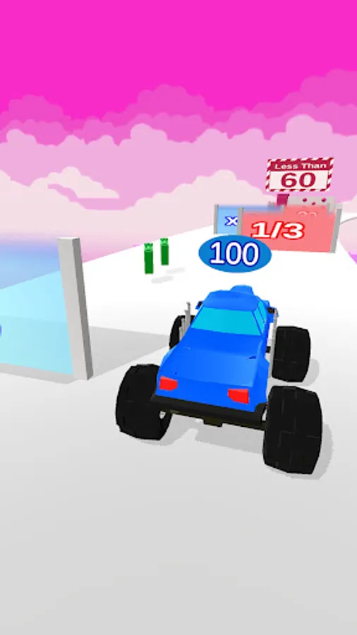 Depending on the size of the obstacles your truck will have to become bigger or smaller. Choose wisely the Gates in order to have the correct size. The Blue Gates will increase your size. And the Red Gates will decrease your size.