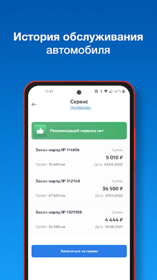 In the Major Auto application, a service record with contactless acceptance is available. You can in a couple of clicks: