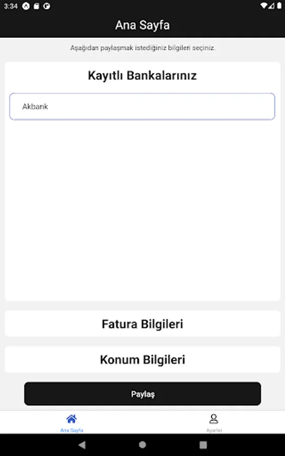 With AboutMeApp, you can save your financial information such as location, bank and billing. You can share this information whenever you want.