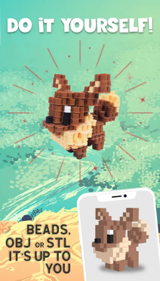 Choose the grid size, create pixel (2D) and voxel (3D) patterns. Bring into reality! Download STL or OBJ file and print it or use your favourite bead brand (Hama, Perler, Artkal, etc)