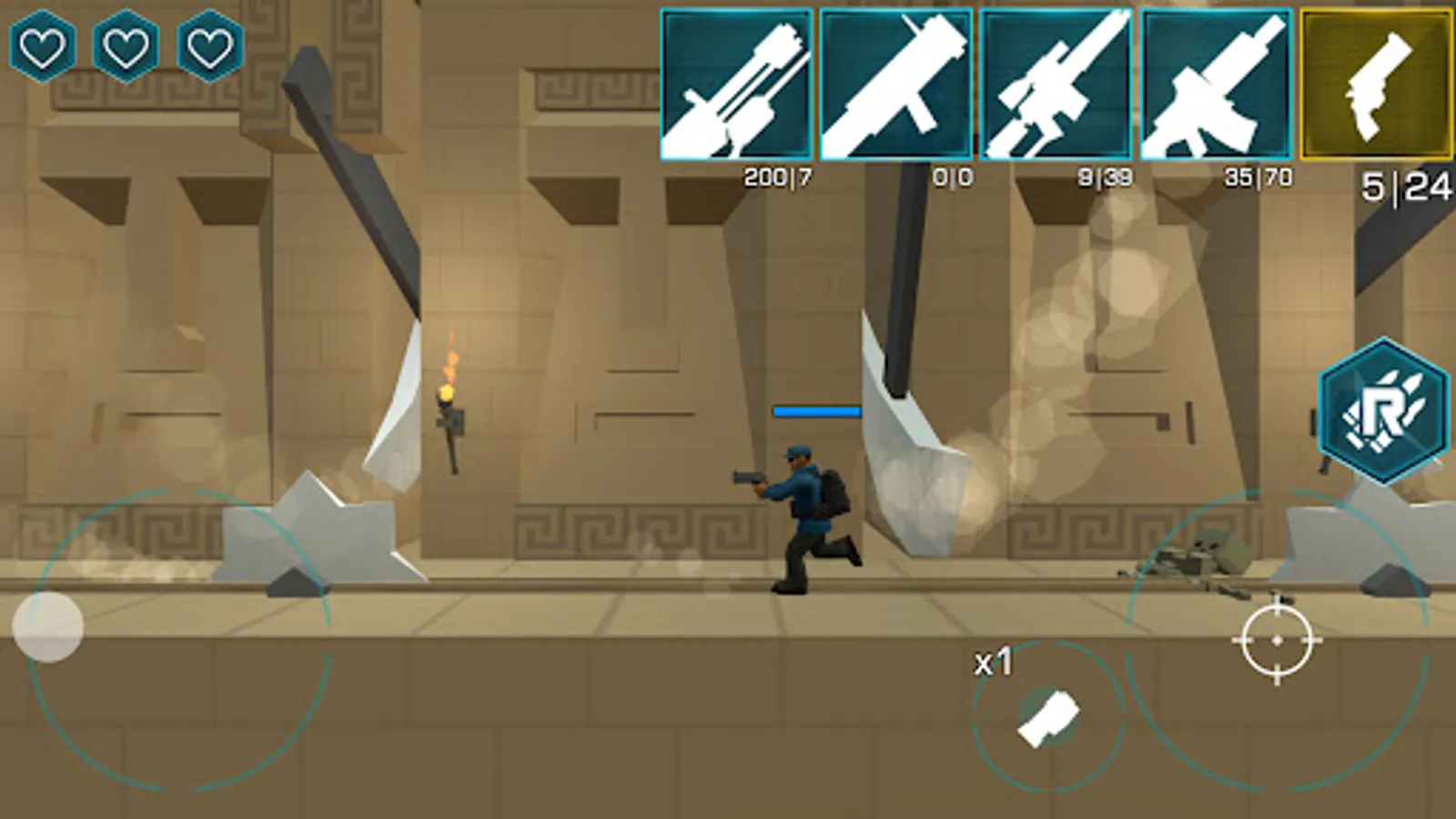 Rolling and dodging enemy bullets.