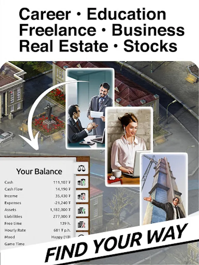 Your game goal is to achieve financial freedom and make the dream of your life come true!