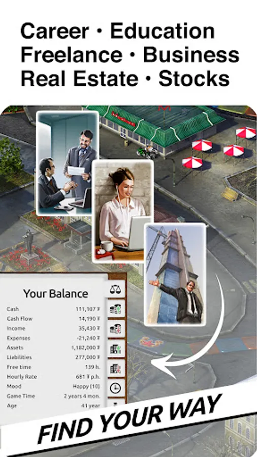 Your game goal is to achieve financial freedom and make the dream of your life come true!
