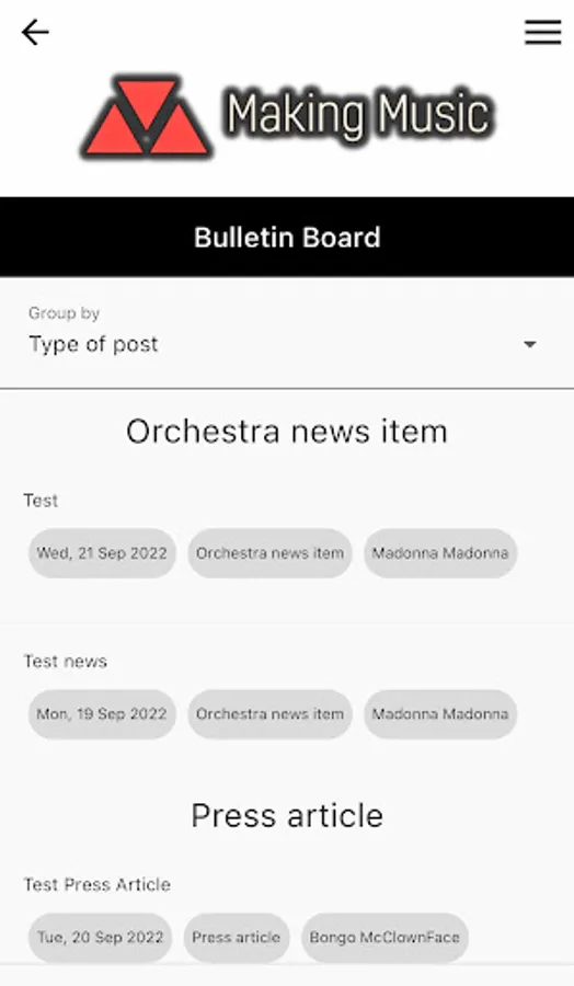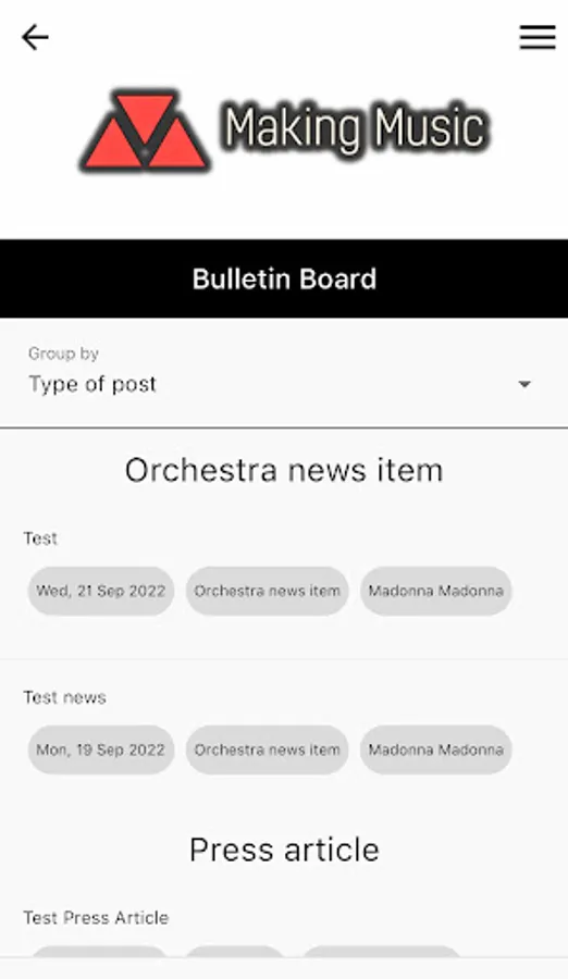 Making Music Platform is a website for showcasing and managing a choir, chorus, orchestra, band, club, industry association - or any organisation with members and events (and usually music). This app is a companion app for any member of such an organisation. It contains a subset of the functionality found in the Members Area of such a website - the functionality most needed when you're on the go - and adds some useful extra functionality.