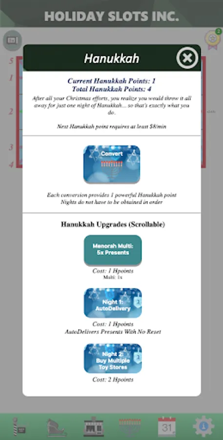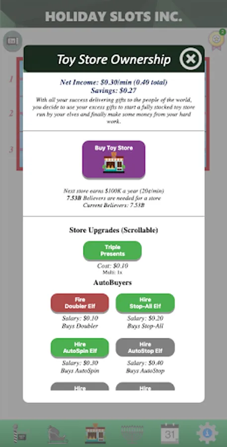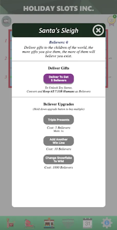 Spin to Win! Use a slot machine to win presents, purchase upgrades and automation, prestige, build businesses, and revolutionize the holiday season!