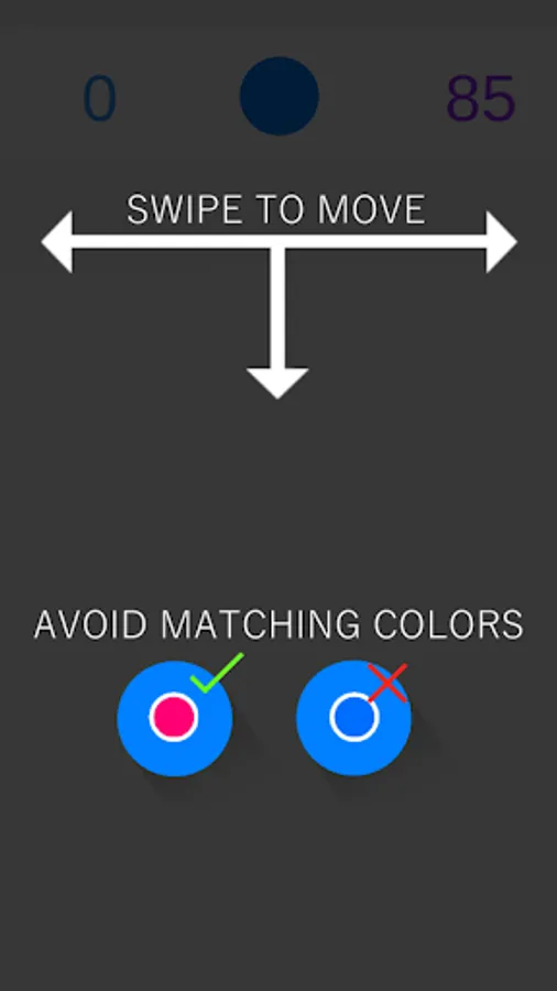 Players must swipe to navigate downward. They must also avoid matching colors in order to survive. Simple right?