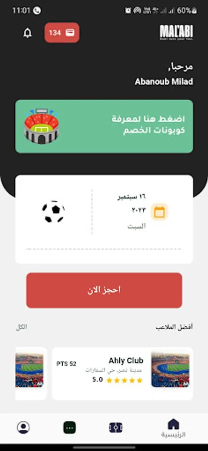 ملعبي هيساعدك انك تحجز الملاعب بسهوله
