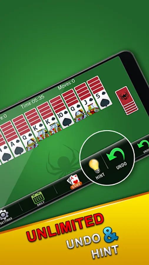 Download Spider Solitaire now and weave your way to greatness as you become a true Spider Solitaire master! Remember, the only way to reach the top is to start spinning your web of cards today!